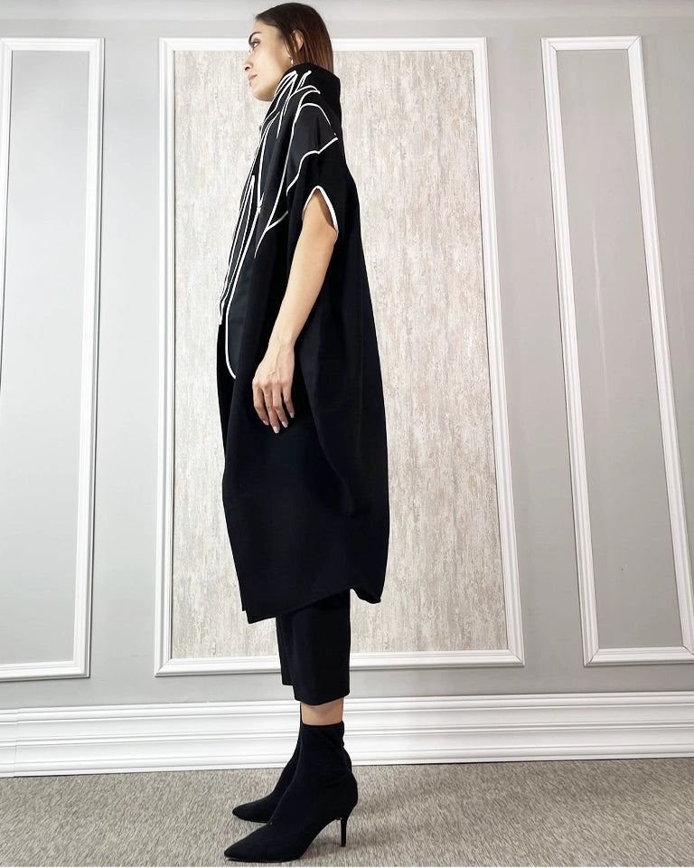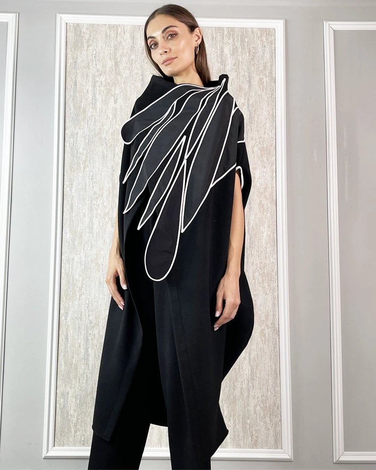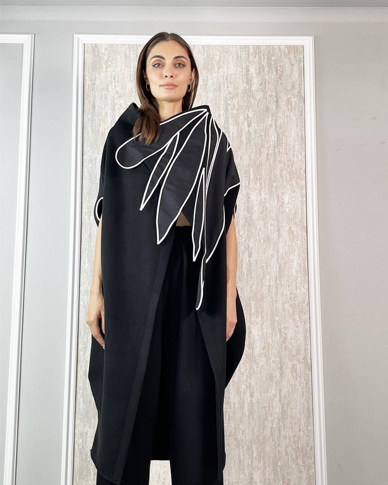 Kaşmir kumaştan yapılmış, uzun, kolsuz, özel tasarım kış yeleği. Yaka kısmında çıtçıt ile kapanır. Sadece kuru temizleme yapılmalıdır.