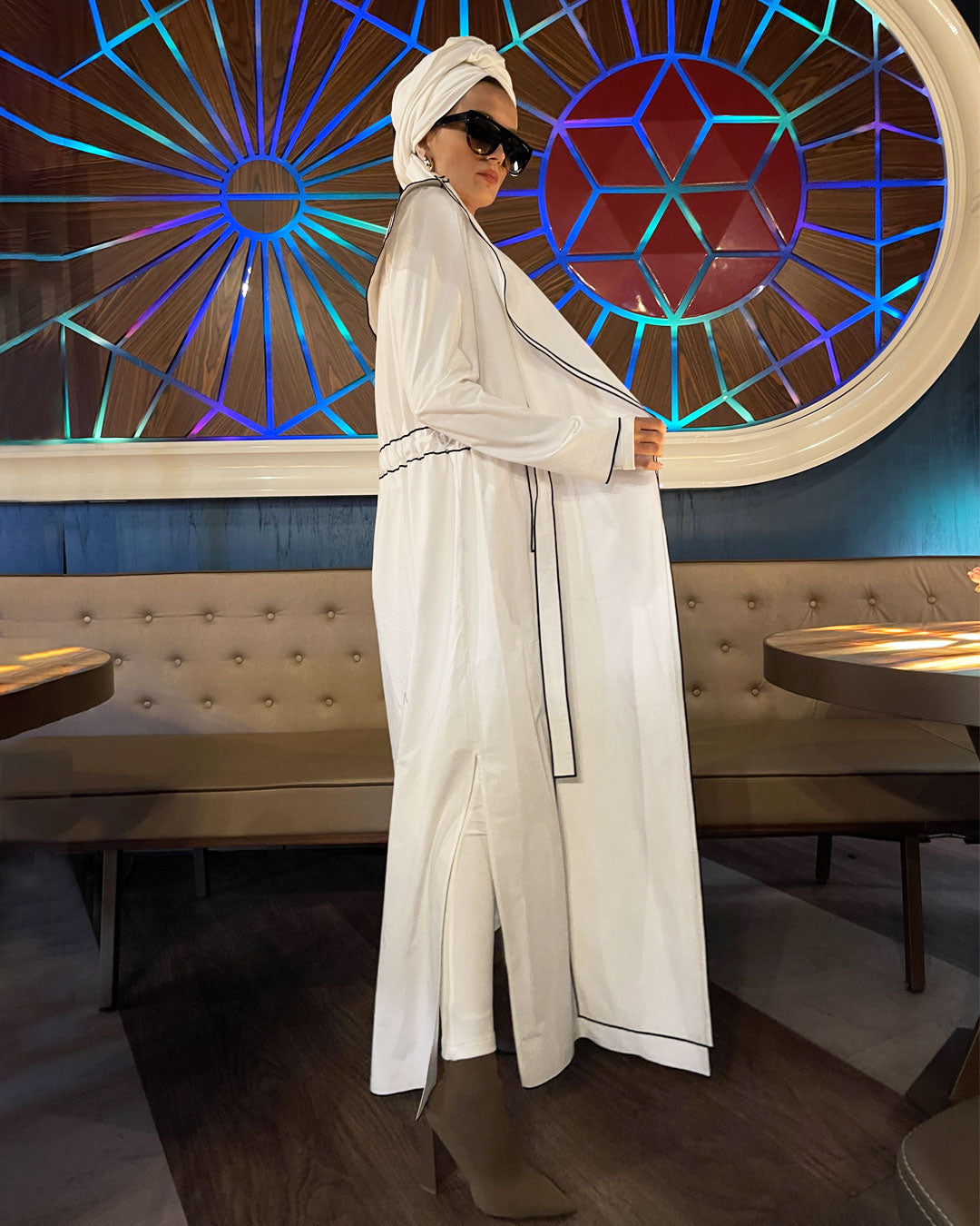Renk: Beyaz. Malzeme: %100 Pamuk. Model: 175 cm, beden 34. Ürünün uzunluğu: 150 cm. Rahat kesim. Sadece kuru temizleme.